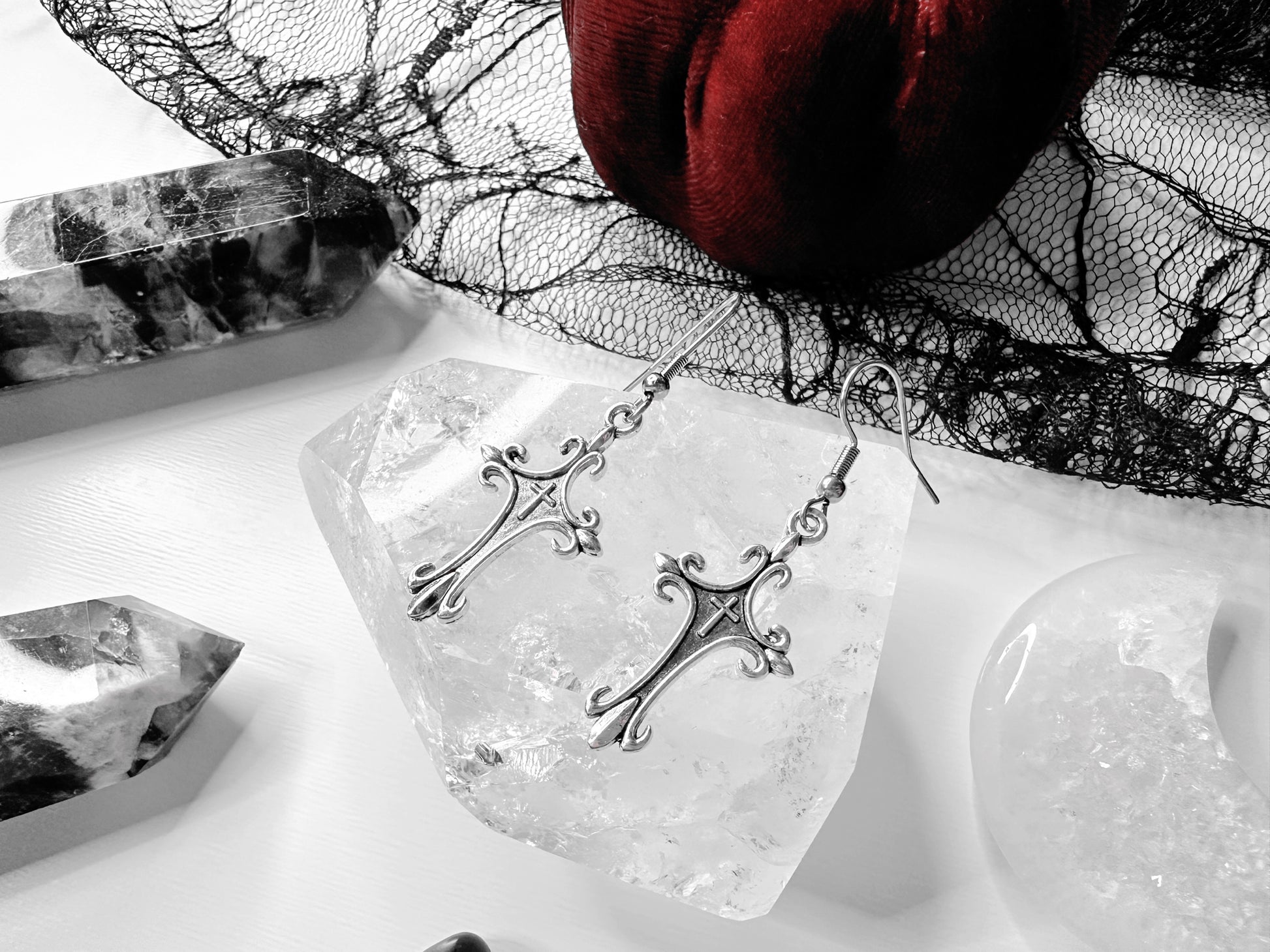From Stainless Steel Earring Hooks Sit A Gorgeous Pair Of Gothic Crosses