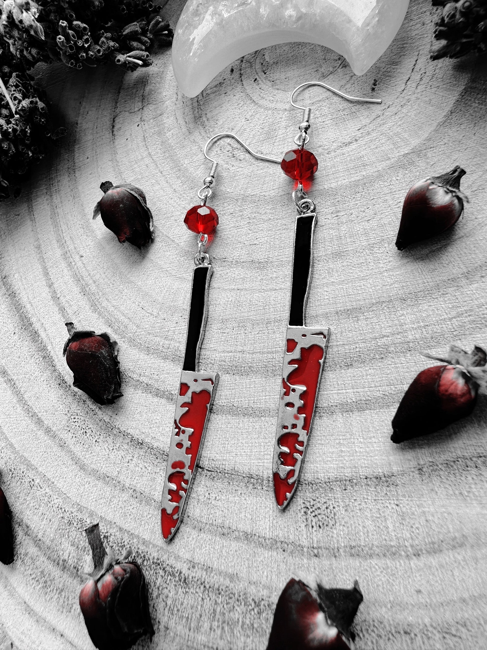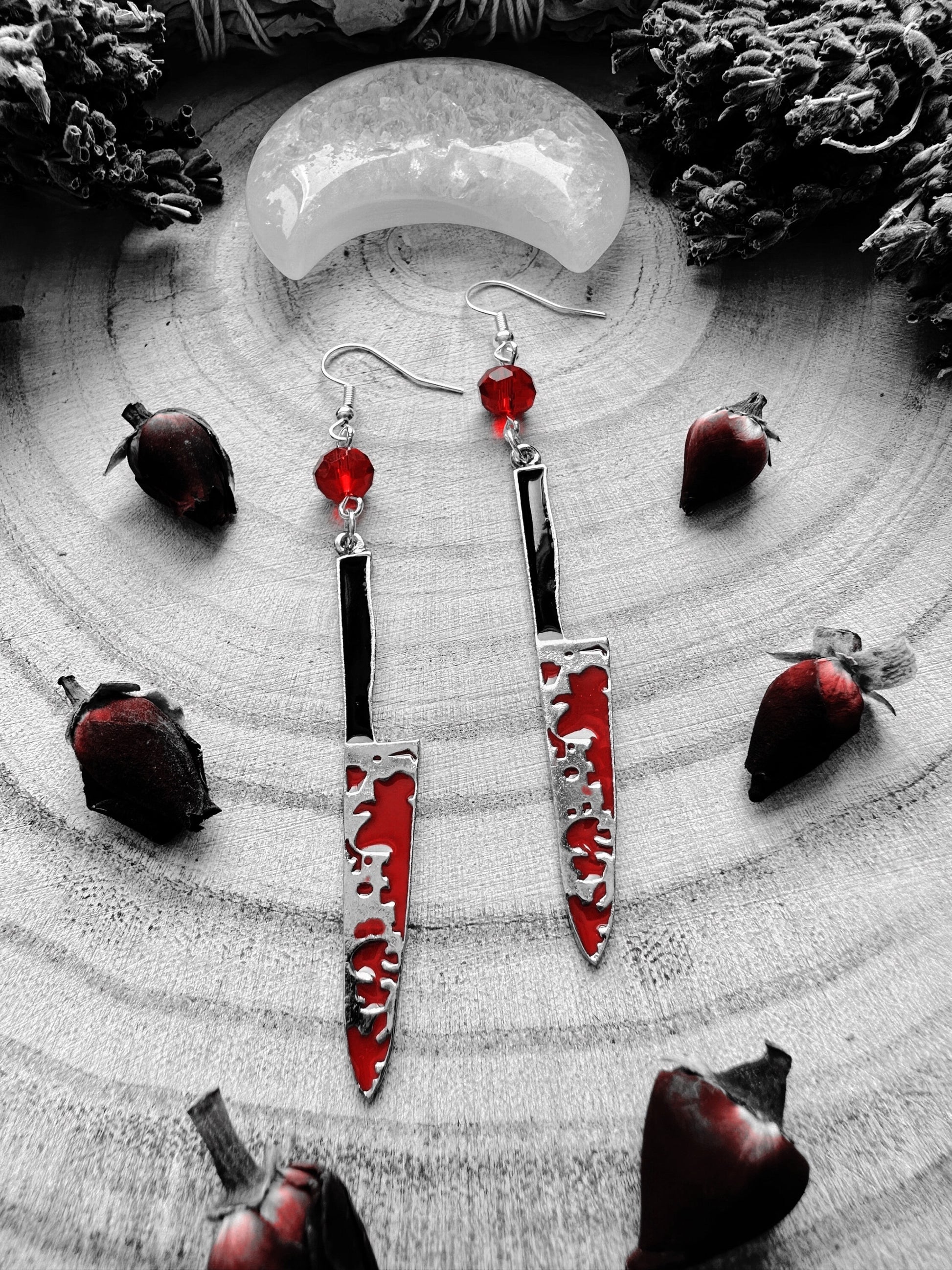 Bloody Knife Earrings Are Made From Pewter & Blood Red Austrian Crystal Beads