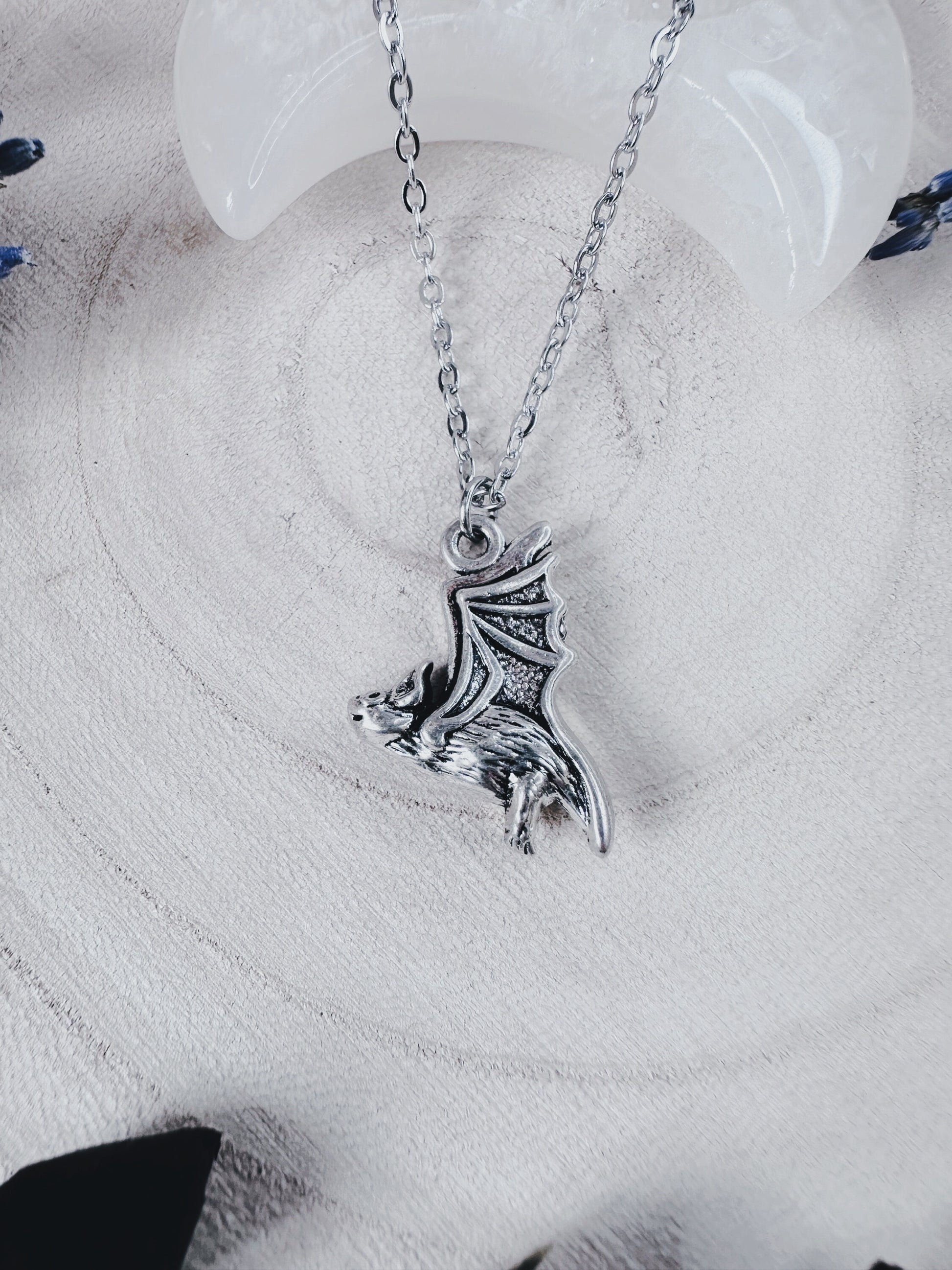Flying Bat Pendant Is Made From Zinc Alloy & Is Set On A Stainless Steel Chain