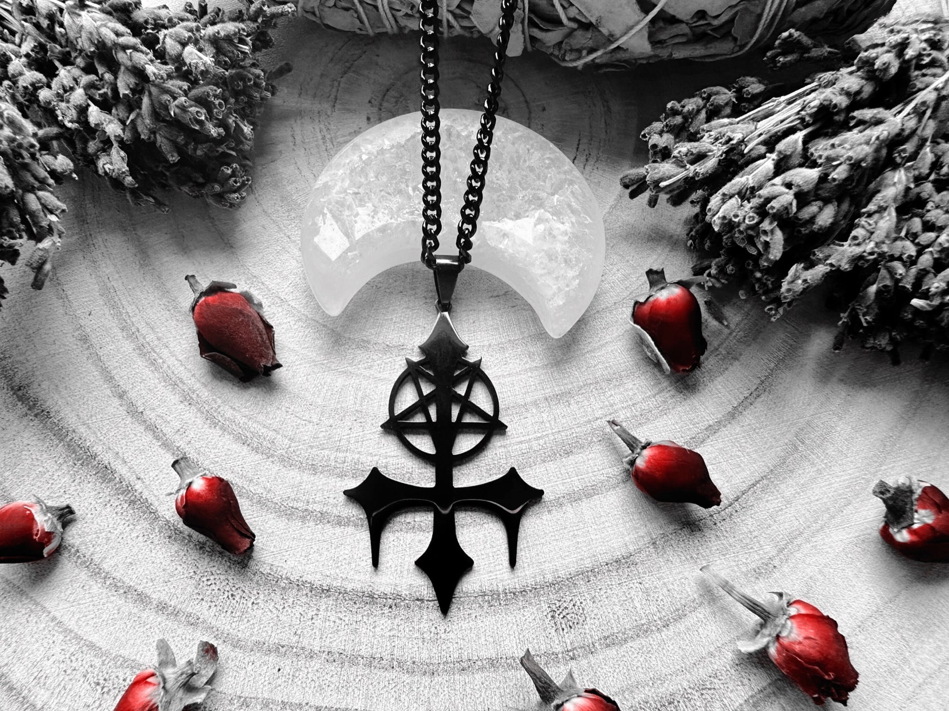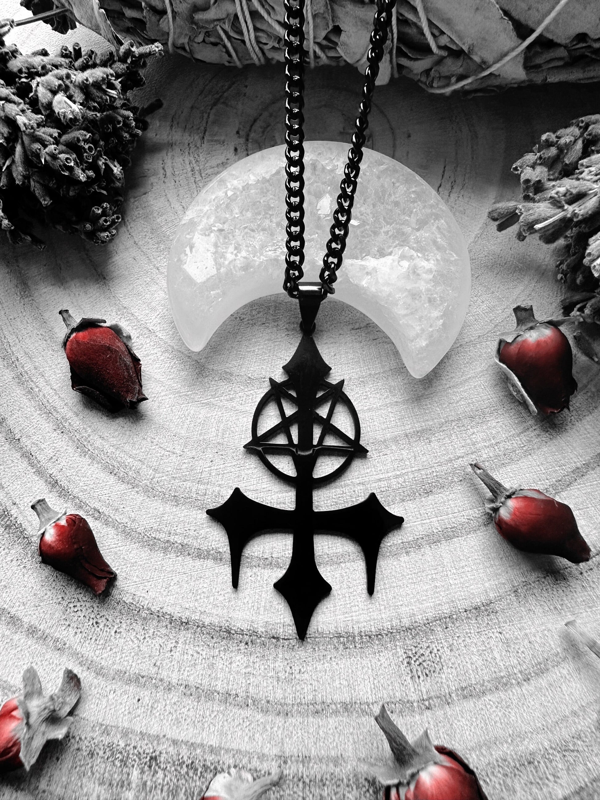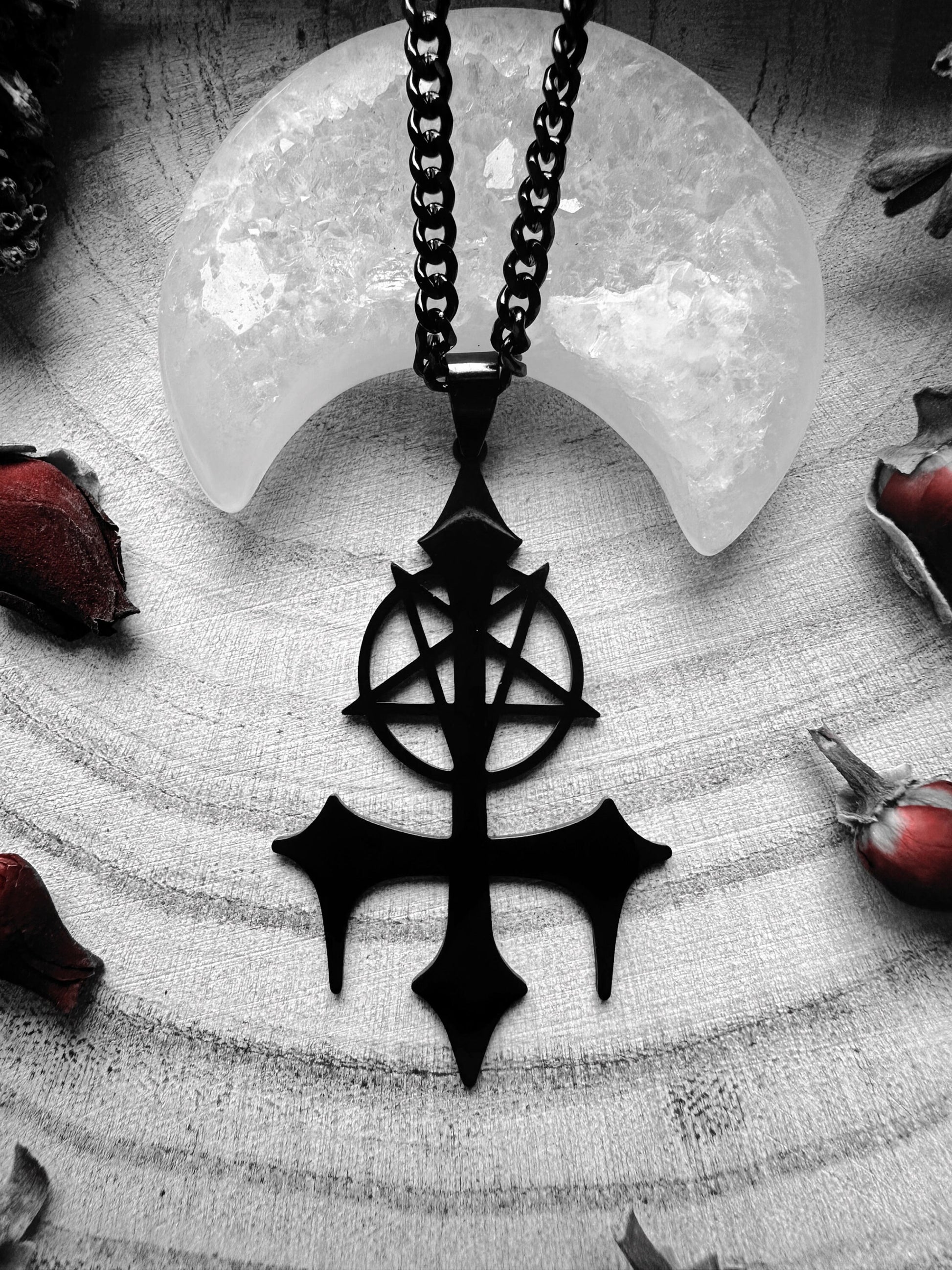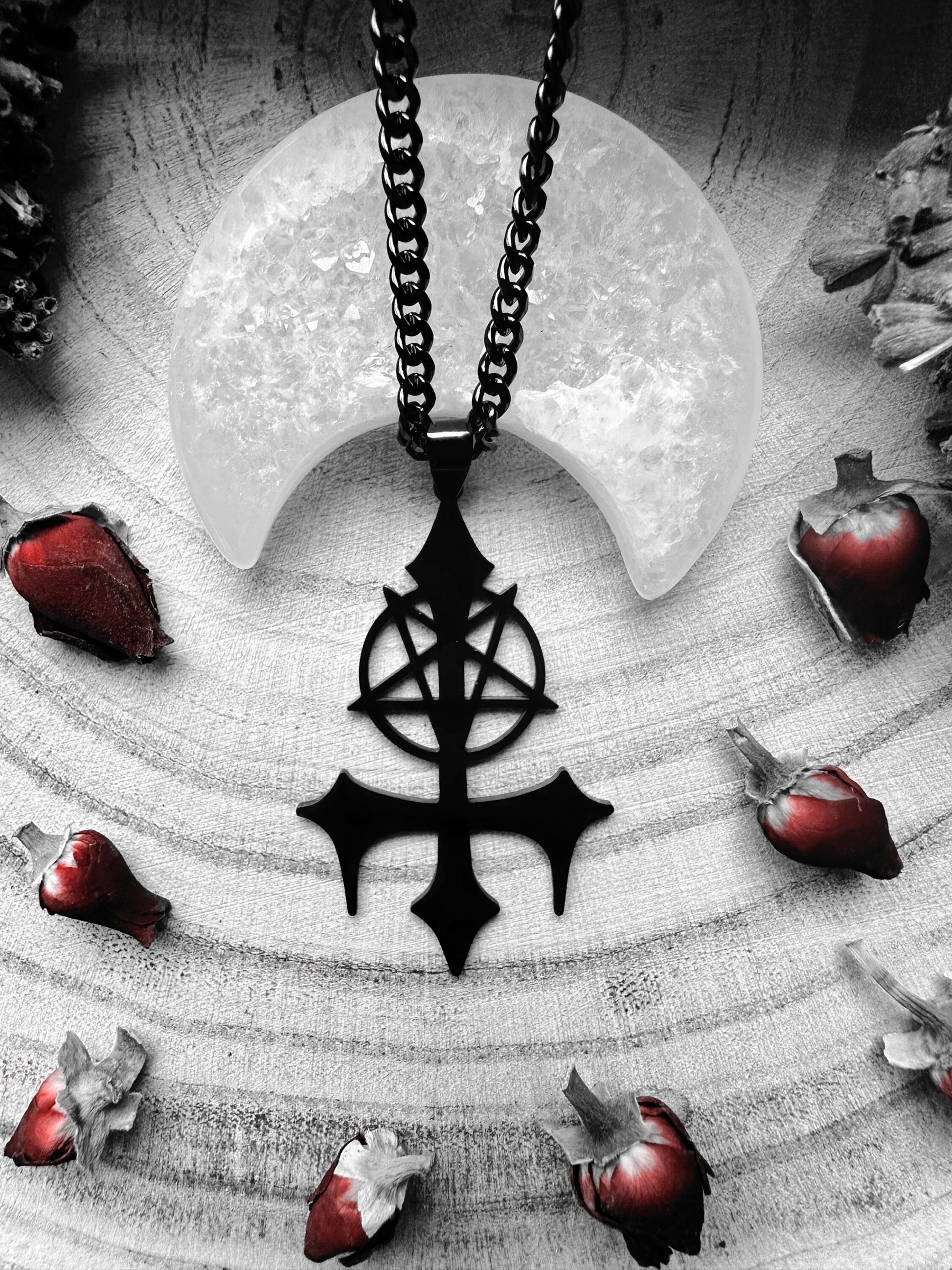 Stainless Steel Black Inverted Cross & Pentagram Necklace