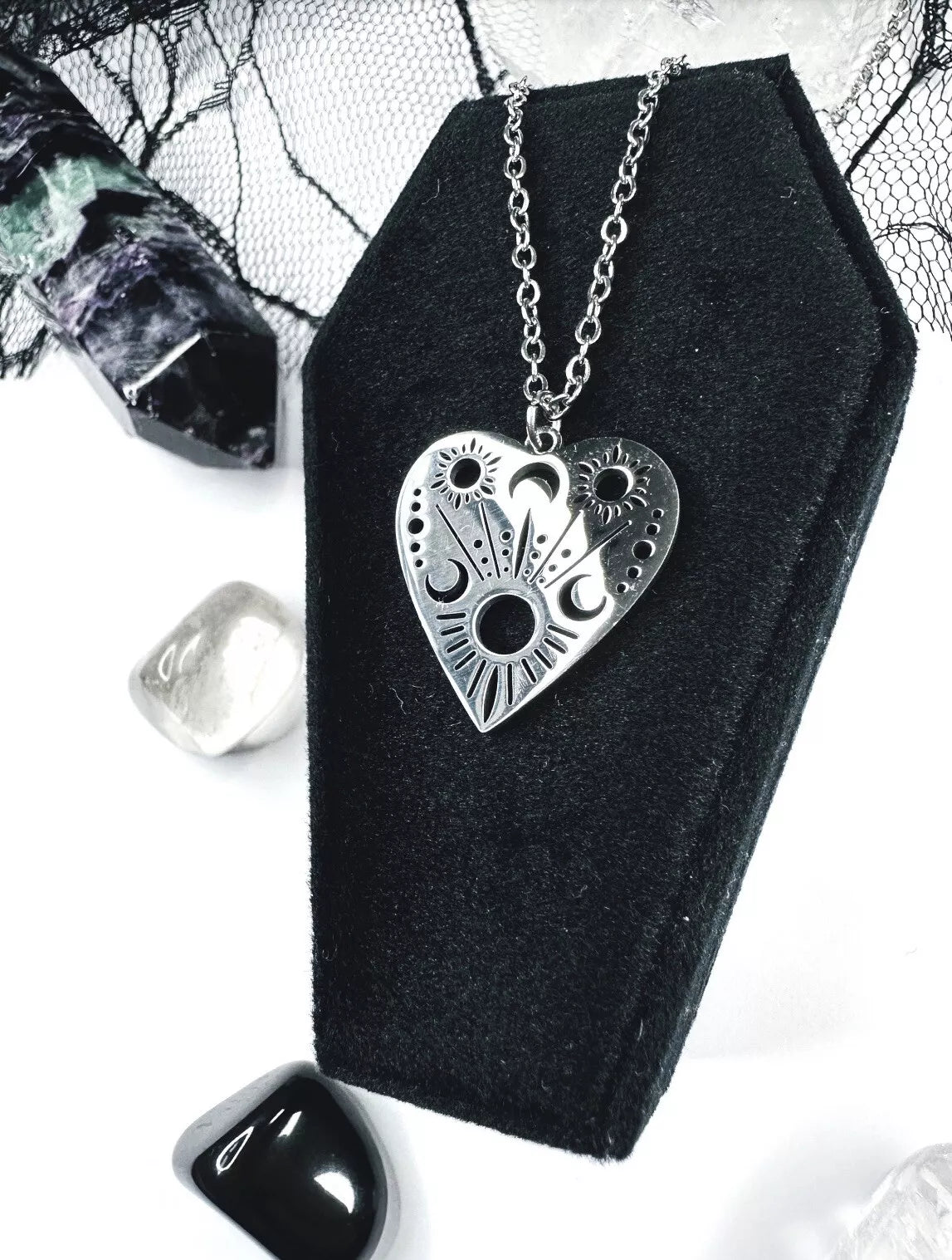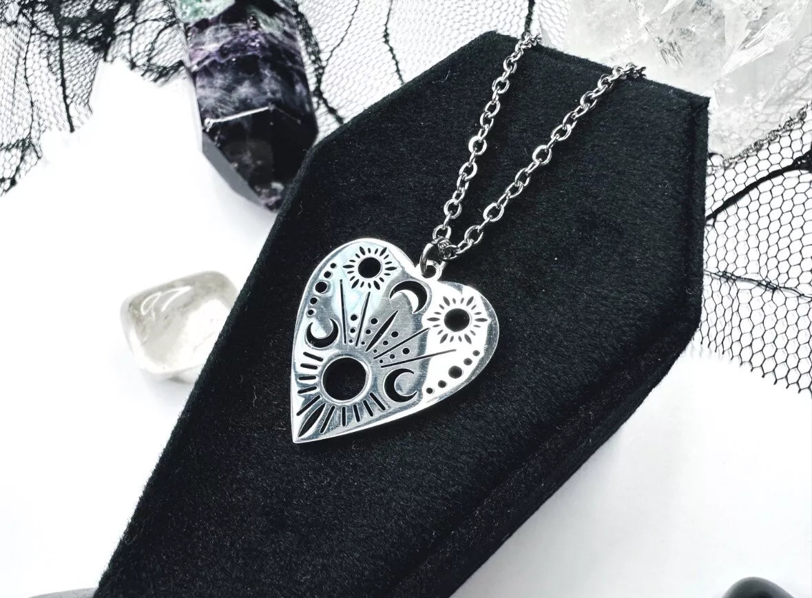 On A Stainless Steel Chain, Suspends An Absolutely Stunning Stainless Steel Ouija Planchette