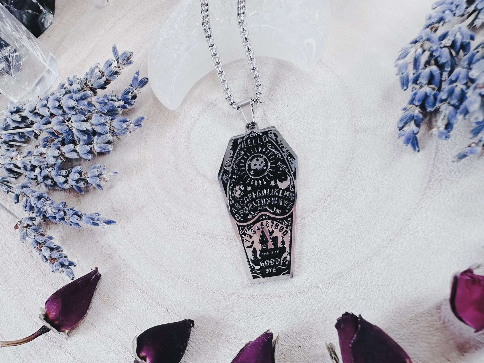 Gothic Stainless Steel Ouija Planchette Coffin Necklace