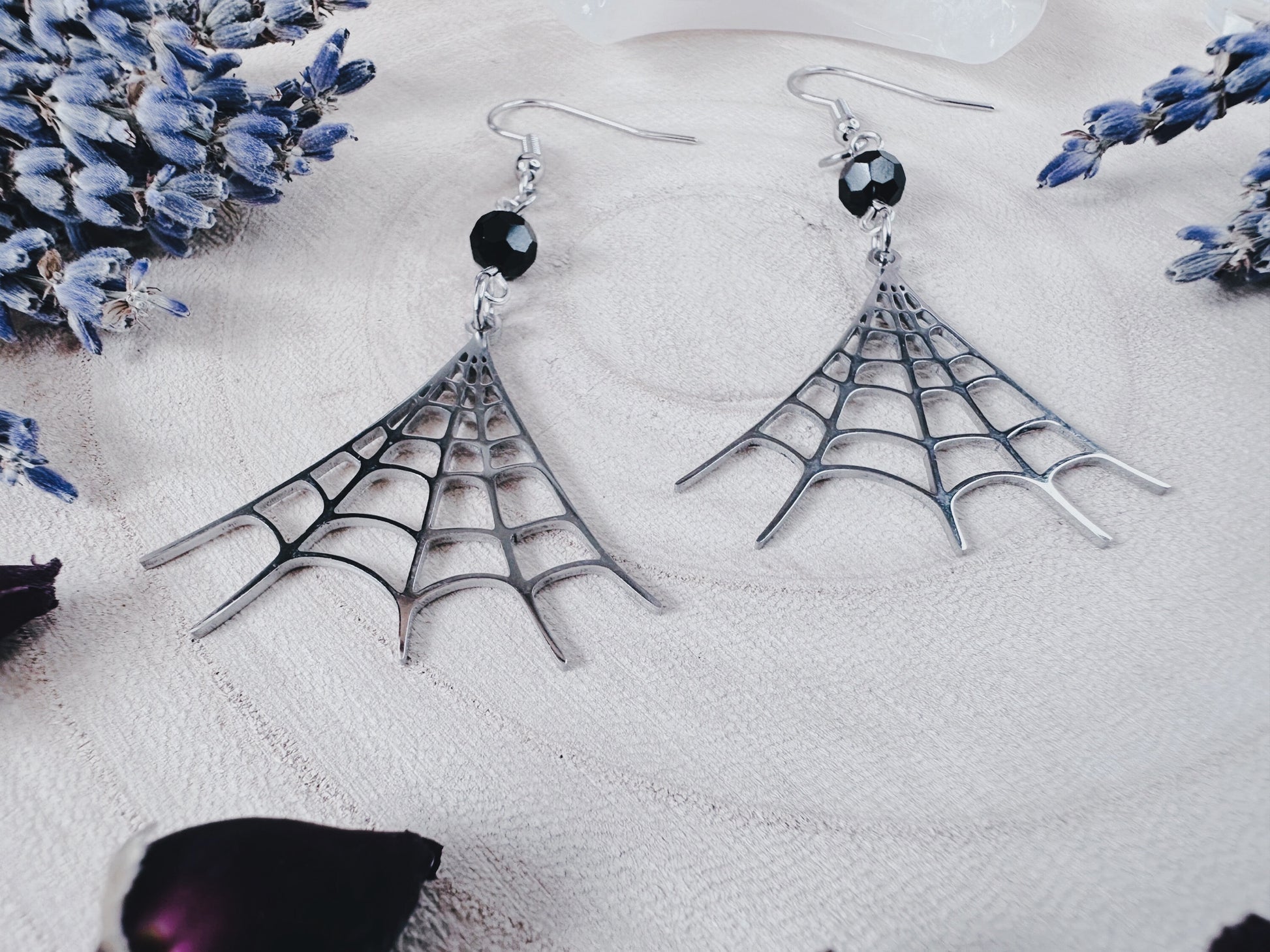 This Gorgeous Spiderweb Measures 4cm In Height & 3.5cm In Width Adorned With Black Austrian Crystal Beads